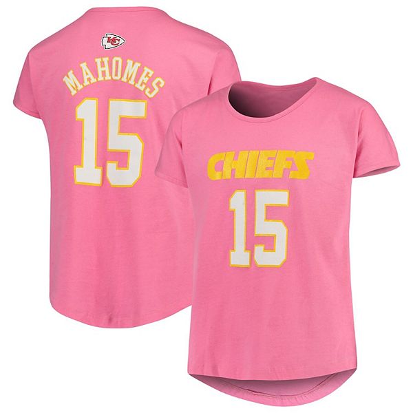 Girls Youth Patrick Mahomes Pink Kansas City Chiefs Dolman Mainliner Name Number T Shirt